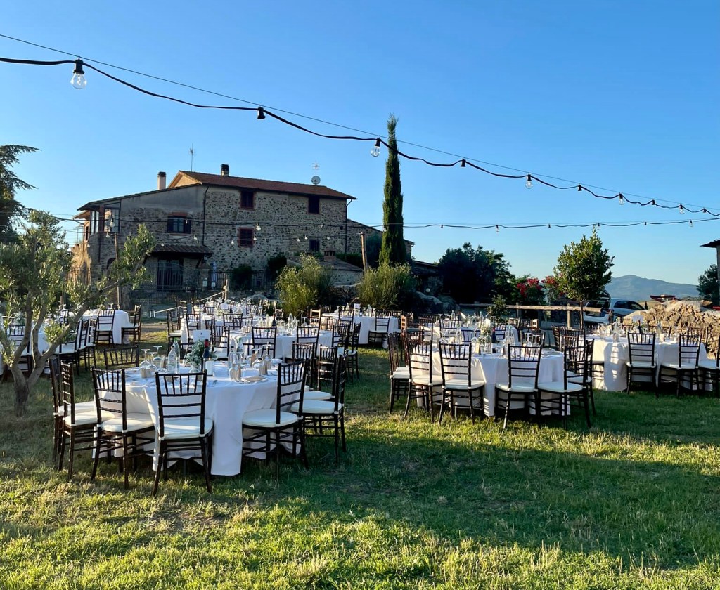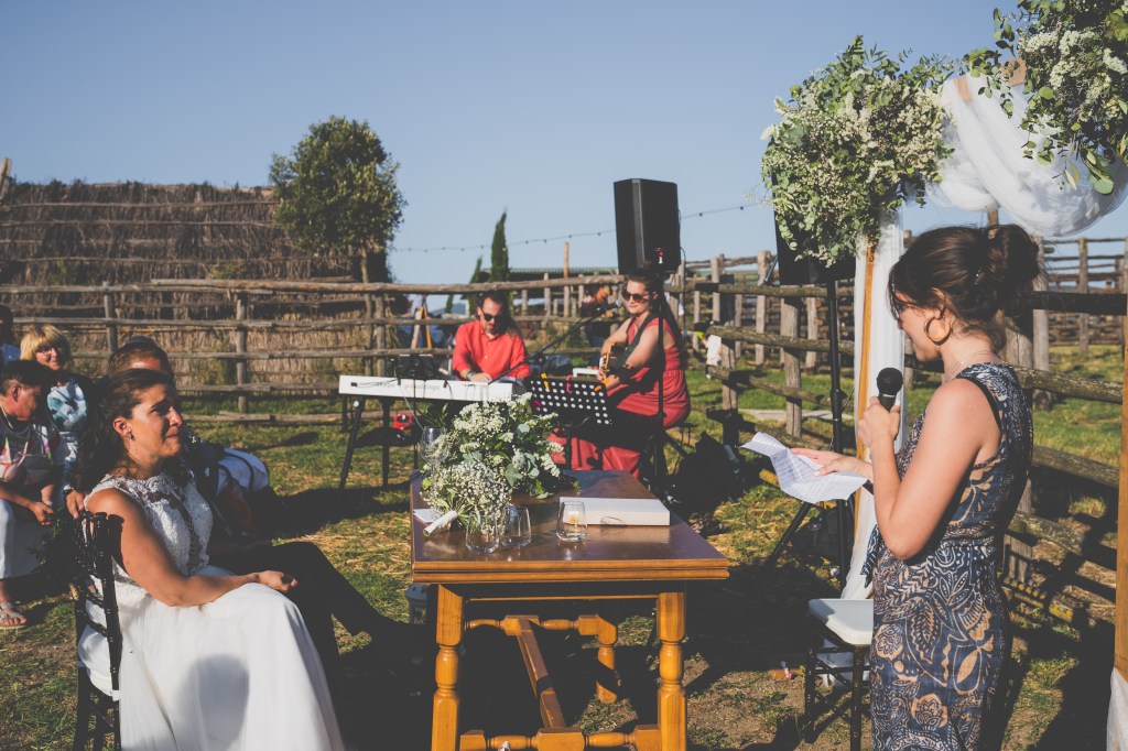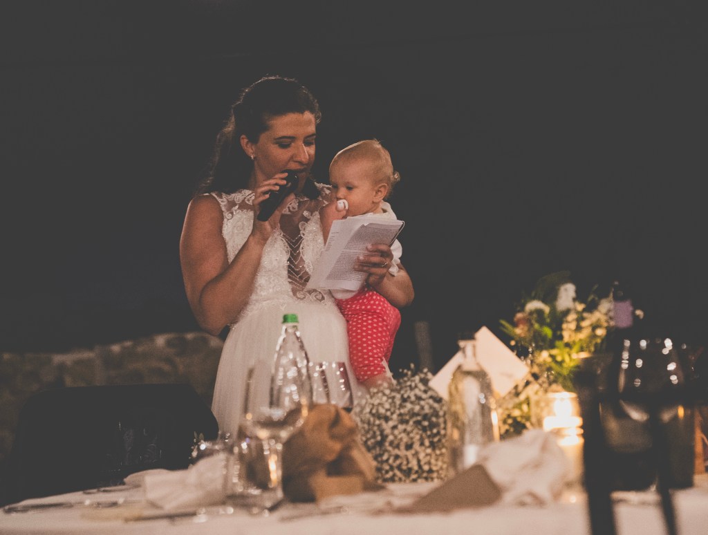 Nel frattempo avevamo anche deciso il programma della giornata, che non mancammo di includere negli inviti. La festa sarebbe iniziata alle 17 con un drink di benvenuto e la possibilità per i nostri ospiti di conoscere Badia Vecchia e i suoi animali. Alle 18 si sarebbe tenuta la cerimonia simbolica, celebrata dal nostro amico poliglotta Alessio. A seguire un aperitivo con antipasti a buffet e la cena servita ai tavoli. E poi, ovviamente, una grande festa fino a tarda notte. Dovete infatti sapere che uno dei motivi per cui abbiamo scelto di festeggiare il nostro matrimonio a Badia Vecchia era la libertà di poter ballare fino a quando lo desideravamo. Loriano al telefono mi disse: “per me potete stare fino al mattino“. Andò proprio così.