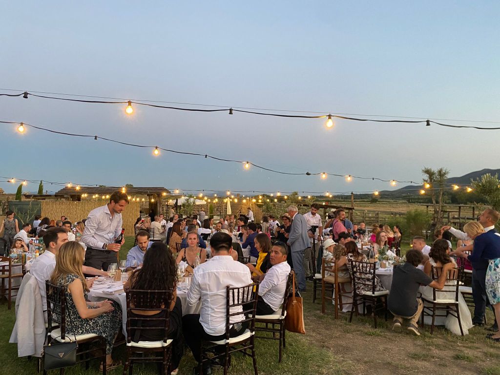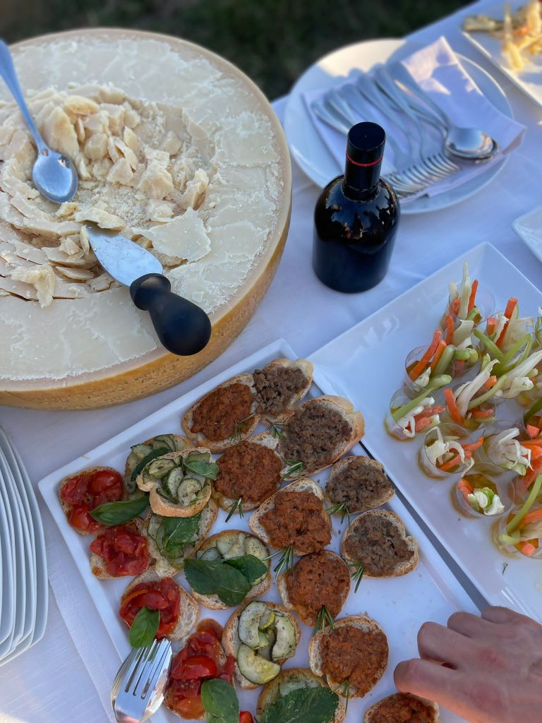 Intanto i nostri ospiti si gustavano l’aperitivo e poi la cena servita. Giancarlo di Fattoria Le Spighe preparò dei piatti squisiti, apprezzati da tutti, oltre a fornire con disponibilità e gentilezza le informazioni richieste. Penso non sia stato semplice ricreare una cucina nel mezzo di un campo, ma questo non ha intaccato la perfetta riuscita del loro lavoro. Di nuovo, anche lato cibo, andò tutto meglio di quanto mai potevamo aspettarci.