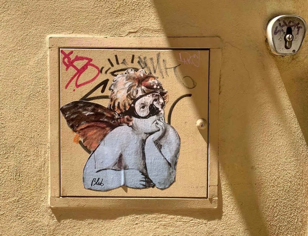 Ad aspettare i nostri ospiti a tavola una lettera personalizzata, che fu un vero piacere scrivere per ognuno, con una stampa con firma originale di un’opera di Blub, uno street artist toscano che amiamo. Ognuno aveva un personaggio diverso della serie l’arte sa nuotare, che si adattava in un qualche modo a ciascuna personalità. Pensammo di creare un piccolo concorso e premiare l’ospite che avesse per primo trovato un opera di Blub nelle strade toscane. Vinse la mia cara amica Claudia, che trovò un angioletto di Raffaello a Firenze proprio il giorno dopo. A distanza di settimane dal matrimonio i nostri ospiti hanno continuato a mandarci foto delle opere di Blub che trovavano in giro per la Toscana. È stata una bomboniera davvero riuscitissima!