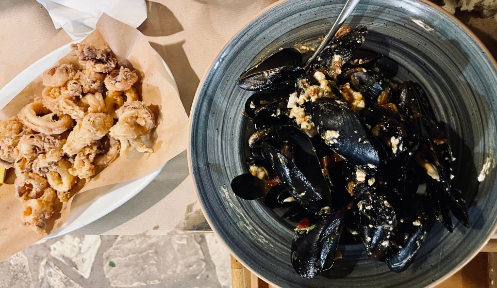 - Per la cena, invece, i posti del cuore sono tutti a Lakka: da Taverna Nionios Gnognos, il gentilissimo proprietario, vi mostrerà (in un italiano perfetto) l’intero menù, alzando i coperchi dei vari pentoloni in cucina. Da Paxoimadi abbiamo mangiato una fava definitiva, oltre a squisiti calamari fritti. Purtroppo non siamo riusciti a provare Alexandros, perché sempre pieno, ma sembrava anche quello ottimo.