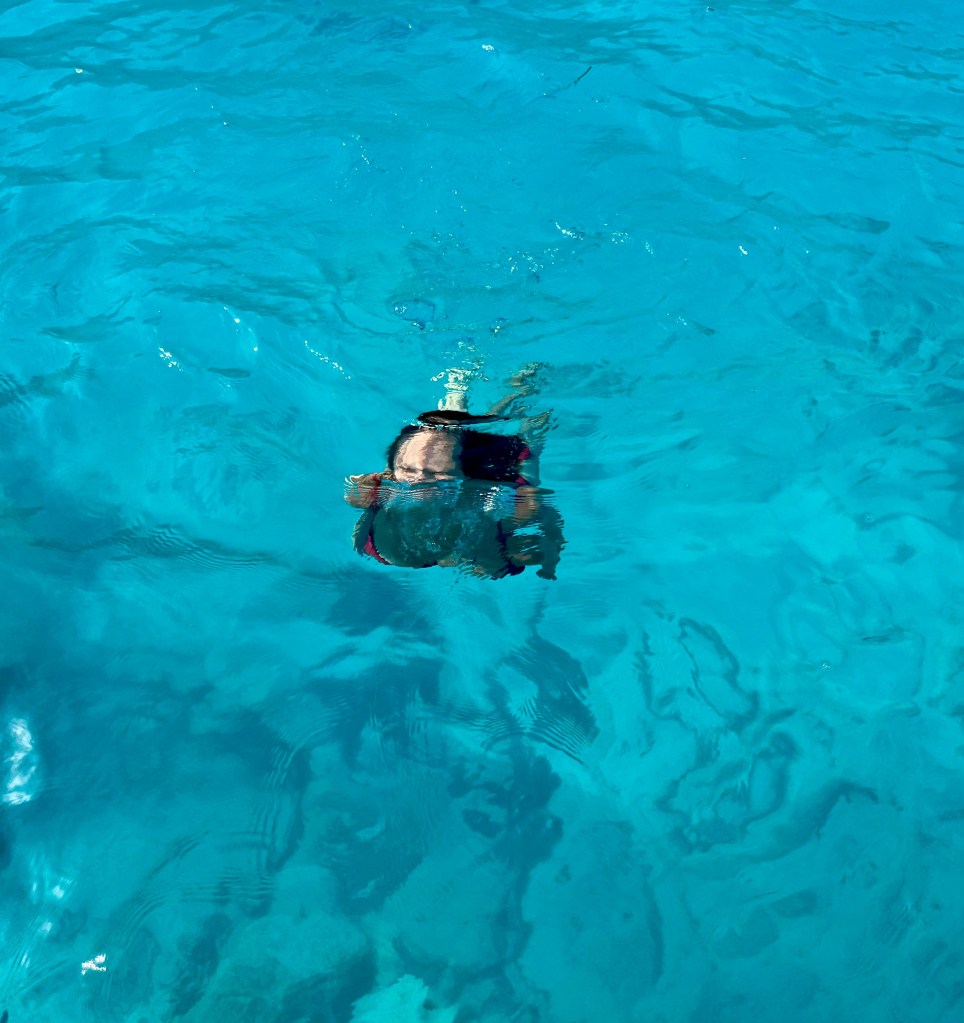 Con il nostro barchino eravamo però liberi di andare dove volevamo e siamo finiti a fare il bagno in punti incredibili, in cui la trasparenza del mare era davvero straordinaria e si vedeva nettamente il fondale, seppur tanto profondo. Allegra ha nuotato felice fino a riva, su una spiaggia deserta, tutta per noi.